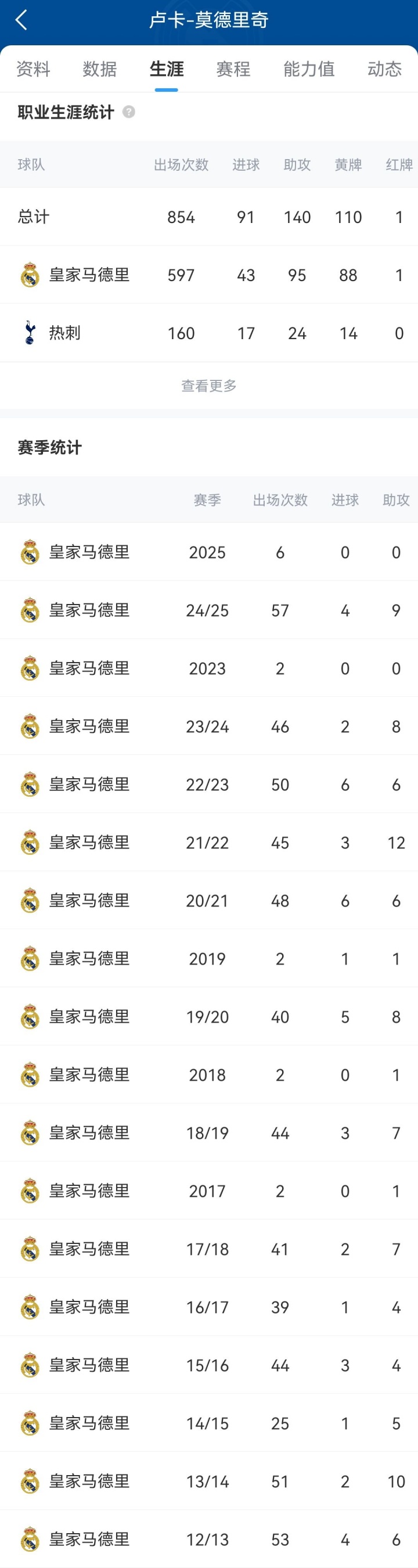 莫德里克(Modric)于2012年加入了皇家馬德里(Real Madrid)。他在13年內進行了597場比賽,打進43球并協(xié)助95次比賽,幫助球隊贏得28冠軍獎杯:6個冠軍聯(lián)賽,6個俱樂部世界杯,5個歐洲超級杯,4個La Liga,2杯杯,2杯德爾·埃爾·雷伊和5個西班牙超級杯。